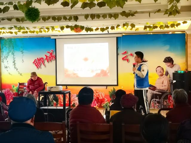 活动伊始,团队成员以婉转悠扬的合唱表演开篇,趣味互动猜谜环节,团队成员用贴合老年人认知的谜题设计,充分调动了老年人的参与热情。随后,团队成员为老年人送上了精心筹备的新鲜水果与手工定制纪念礼品,每一份心意都承载着他们对老年人的关怀,为老年群体带去了切实的慰藉。活动结束后,团队成员围坐在老年人身旁,与他们进行亲切的交流,细致询问他们的身体健康状况、日常生活需求及实际困难,耐心倾听老年人分享过往岁月中的人生经历与时代故事,进一步加深了团队成员对老年人生活现状与情感诉求的理解。