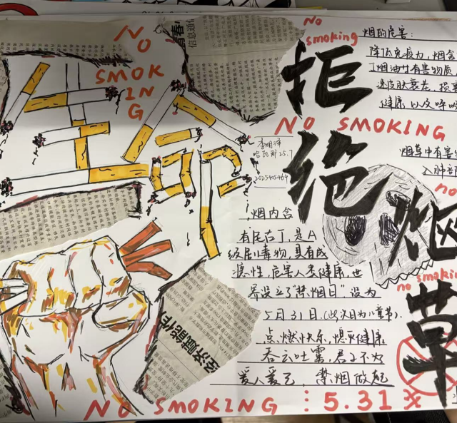 校园作为人才培养与学术交流的核心阵地,吸烟行为不仅严重危害吸烟者自身的呼吸系统、心血管系统健康,二手烟、三手烟更会对周边师生造成不可逆的健康影响,同时还存在引发火灾等安全事故的重大隐患,与文明校园建设的目标相悖。基于此,学院宿舍服务办公室将禁烟宣传教育作为校园安全治理的重要抓手,创新采用手抄报、主题展板、场景化易拉宝等师生喜闻乐见的宣传形式,构建全方位、多维度的宣传矩阵。在手抄报创作环节,师生们以画笔为媒,通过生动的插画、详实的文字,直观呈现烟草中尼古丁、焦油等有害物质的危害,描绘无烟校园的美好愿景,每一幅作品都凝聚着对健康生活的追求与对校园安全的守护;主题展板与易拉宝则被巧妙布置在宿舍楼下、教学楼大厅、食堂门口等人员密集区域,内容涵盖吸烟与疾病的关联数据、校园禁烟规章制度、拒烟小技巧等,以图文并茂的形式实现禁烟知识的精准触达,让师生在日常出行中潜移默化地接受教育。本次禁烟专项治理活动的开展,取得了显著成效。一方面,通过沉浸式的宣传体验,师生对烟草危害的认知从模糊概念转变为具体认知,对校园吸烟隐患的重视程度显著提升,“主动拒烟、互相监督”的责任意识在全院范围内蔚然成风,越来越多的师生主动加入禁烟宣传队伍,成为无烟校园的倡导者与践行者。另一方面,多元宣传形式有效弥补了传统教育模式的不足,拓宽了禁烟教育的覆盖面与影响力,引导师生自觉规范行为,主动远离烟草,校园内吸烟现象明显减少,吸烟相关的安全隐患得到有效遏制。